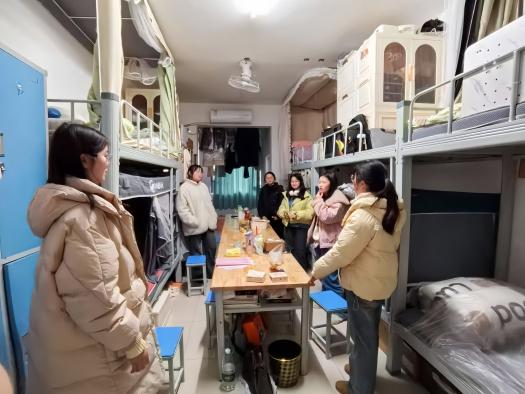本网讯(通讯员 刘雪莹、段佳梦)为了解员工们寒假生活情况和返校状态,2025年2月23日,药公司党委书记王江生、经理张朝晖、党委副书记张勇华、辅导员鲁明新、向晓媚、各班班主任以及团委员工会部分成员开展下寝走访活动。
