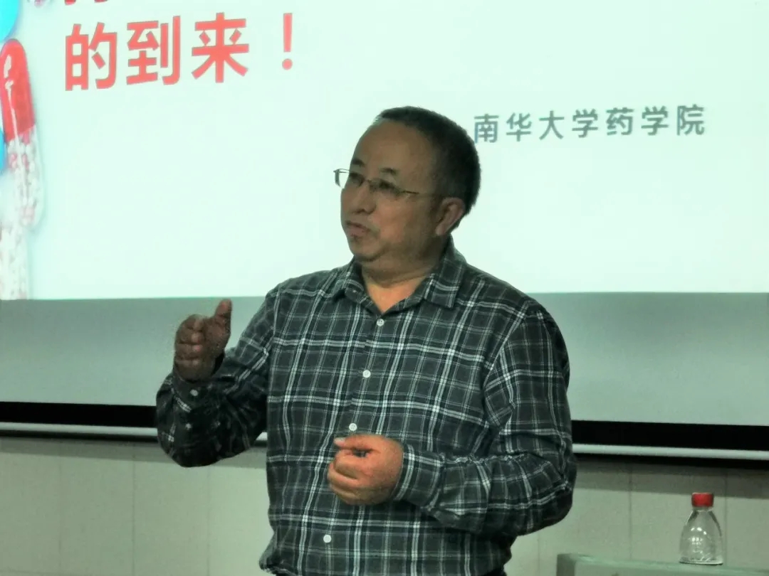 图为 南华大学EMC易倍谢志忠博士做考研宣讲